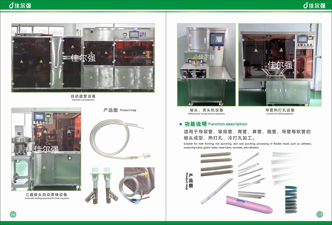 蘇州佳爾強公司主要從事醫療器械行業: 尿袋、引流袋、沖洗袋,腿袋,喂食袋、腹膜透析袋,營養袋,喂食袋,血袋,輸液袋等各種醫療液袋類自動高頻高周波焊接熱合設備, 醫療液袋氣密性檢測,測漏設備,氣檢設備。 吸痰管、導尿管、引流管,胃管,氣管插管,等各種管類的熱打孔設備,燙頭,熔頭成型設備,閉口,封口,開口等成型,設備通用型強,換型方便。 致力于對高頻高周波熱合制造深度開發, 通過不斷創新,融合國內外先進的自動化技術,使高頻制造自動化更好的發揮其優勢,更好的為客戶服務。